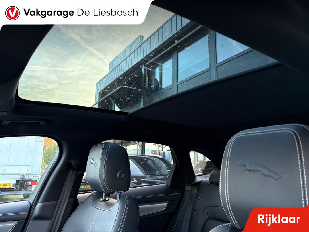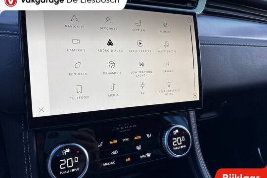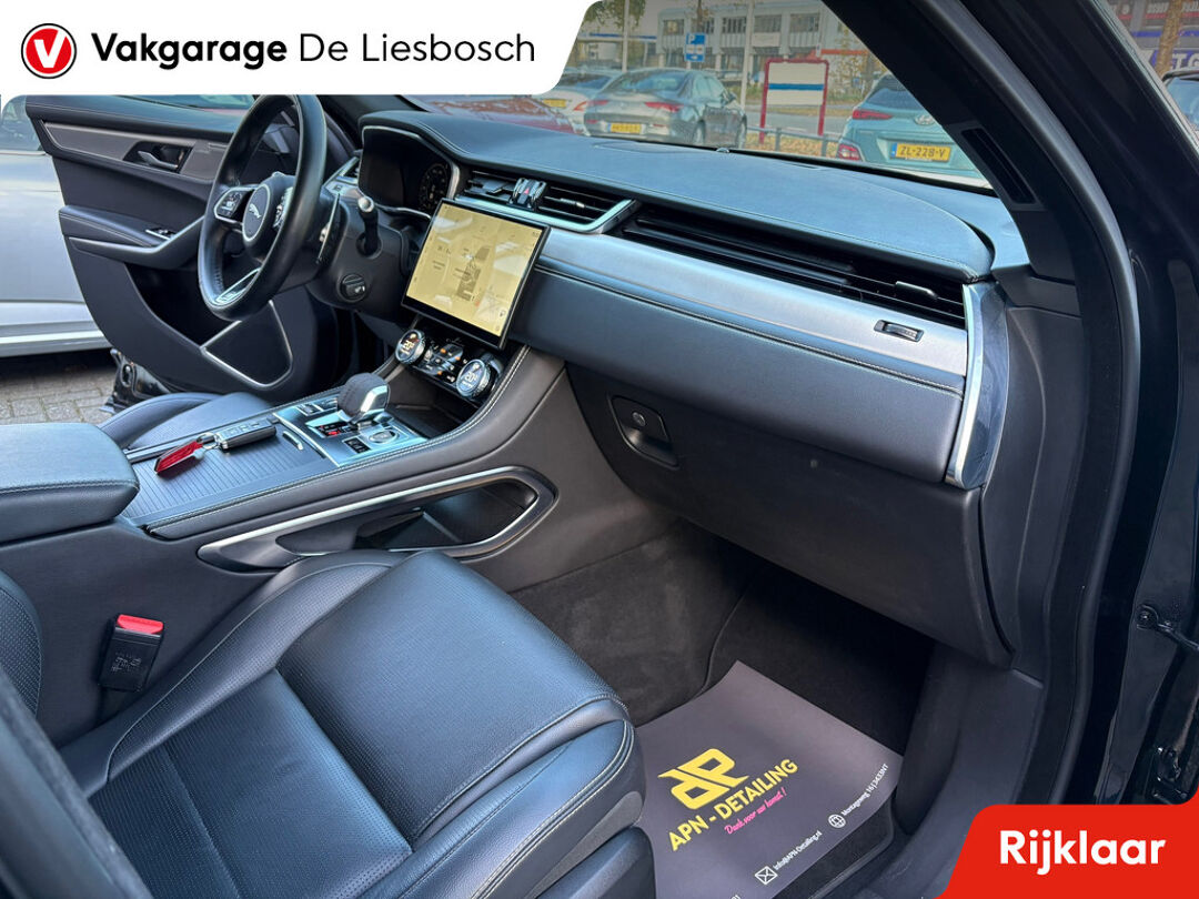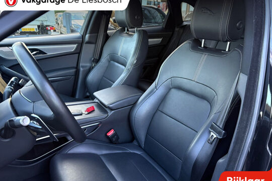 Laat u niets wijsmaken, deze Jaguar F-PACE biedt alles wat u van een auto verlangt. Met een viercilinder motor en een automatische transmissie beschikt deze Jaguar over uitstekende prestaties. Een blik van dichtbij onthult meteen twee mooie pluspunten: het lederen interieur en de elektrisch bedienbare achterklep. Koude start? Niet met de verwarmbare voorstoelen! Scherpe bochten, pittige acceleraties? In de sportstoelen blijft u altijd in positie. Onderweg heeft u extra veel te zien dankzij het glazen panoramadak. Het verwarmbare stuurwiel is een teken van ultieme luxe. Deze voorziening is een topklasse auto waardig. De geavanceerde matrix LED-verlichting in de koplampen levert maximaal helder zicht en past zich subtiel aan zodra er een tegenligger komt. Zonder lichtkwaliteitsverlies! Verder is de Jaguar uitgerust met: trailer assistent, extra getint glas, in delen neerklapbare achterbank, LED-achterlichten, verstelbare lendensteunen en snelheidsafhankelijke stuurbekrachtiging.