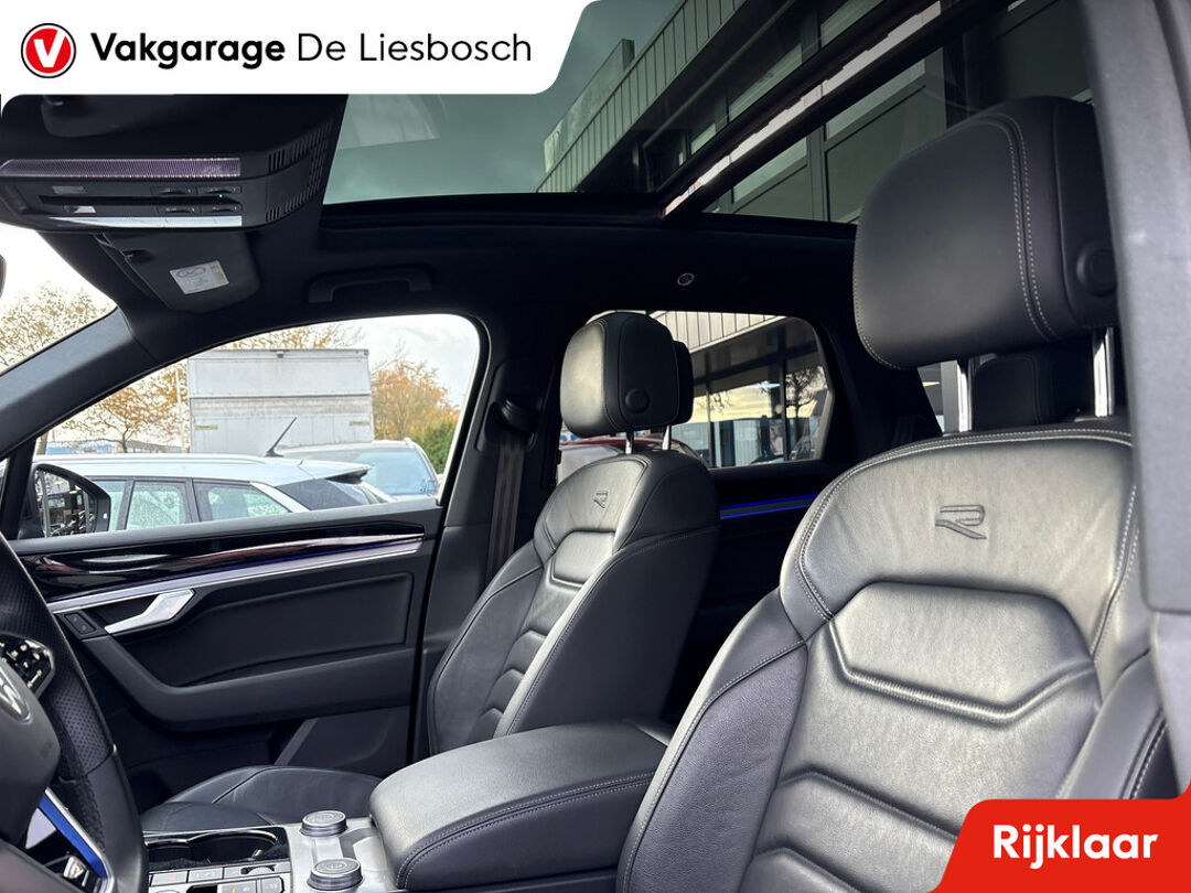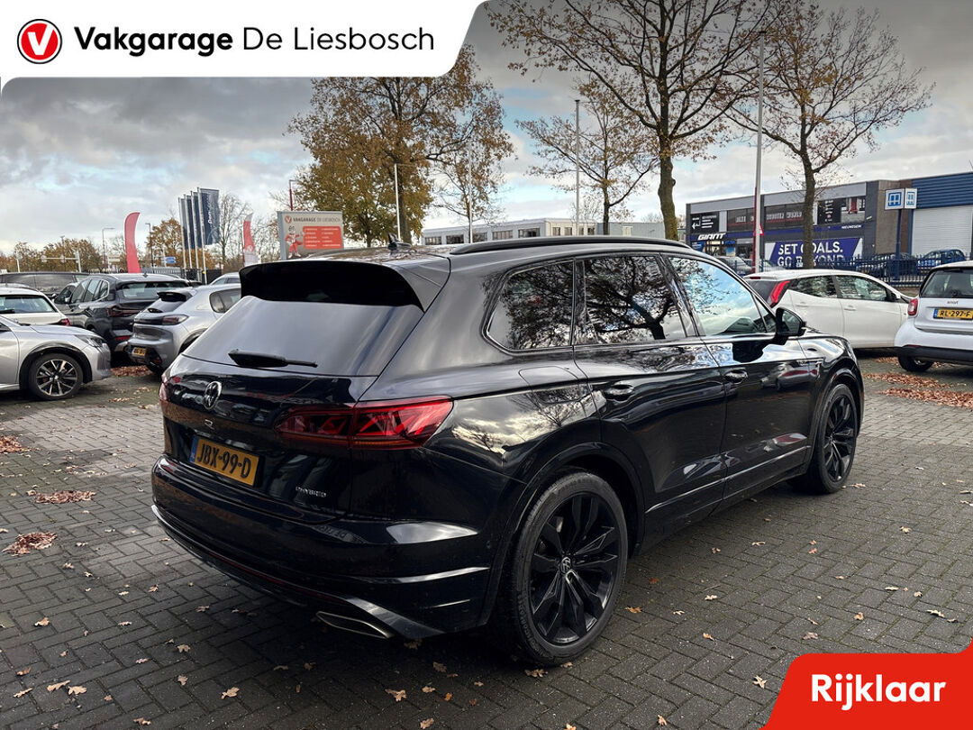 Als u al eens eerder een Volkswagen hebt gehad, kijkt u niet meer op van zijn uitstekende rijkwaliteiten, zijn doordachte design en zijn hoogwaardige techniek. Die kwaliteiten vindt u ook in deze Touareg. Ja, hiermee ga je opvallen. De R-Line styling maakt dat je nooit ongemerkt voorbij gaat. Volkswagen-rijders weten het: een VW is gebouwd voor duurzaamheid en deze Touareg ziet er dan ook uit als nieuw. Met een zescilinder motor en een automatische transmissie beschikt deze Volkswagen over uitstekende prestaties. De luchtvering zorgt voor comfort en een ultieme wegligging. U hóeft natuurlijk niet off-road te gaan om de voordelen van de vierwielaandrijving te ervaren... Maar het kán zeker wel! Van binnen ziet u een lederen interieur, een stijlvolle uitvoering. U past de stoelen moeiteloos aan, ze zijn elektrisch in te stellen en hebben bovendien een geheugen. Fun en functie wordt samengebracht in het elektrisch bedienbare glazen panoramadak. Met een druk op de knop gaat de elektrische achterklep open. Tot de voorzieningen van deze auto behoren verwarmd stuurwiel, LED koplampen, warmtewerend glas, trailer assistent, zwarte hemelbekleding en in delen neerklapbare achterbank.