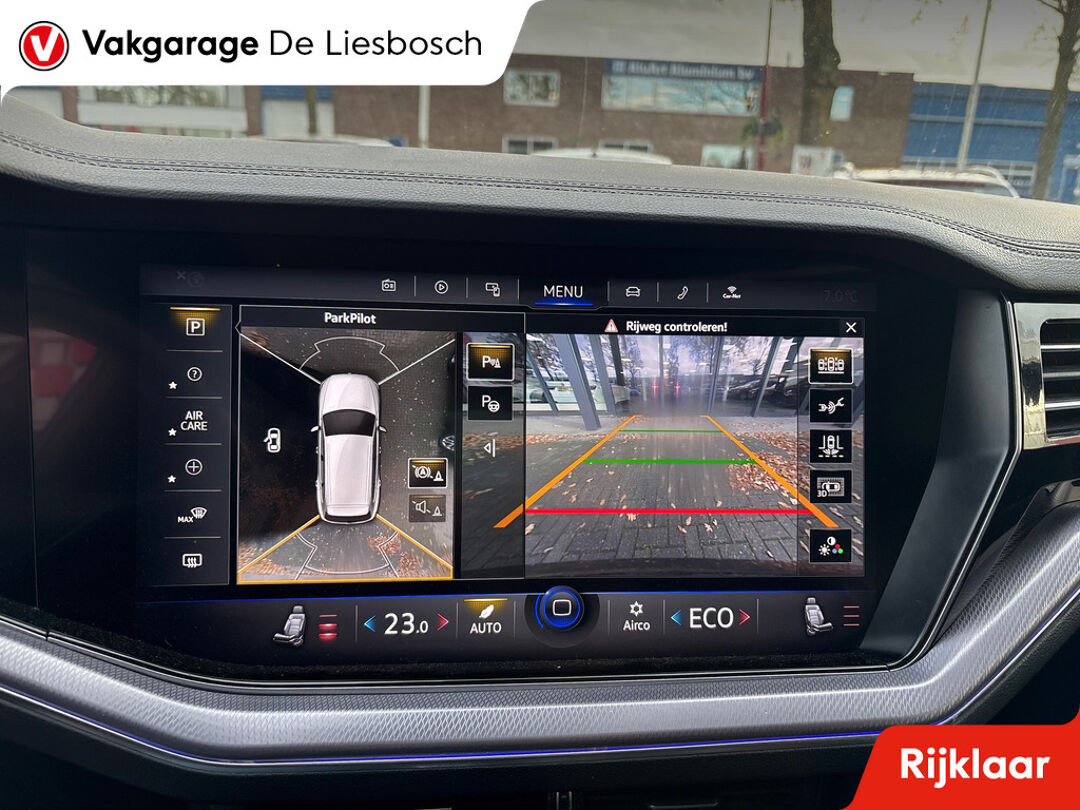 De Volkswagen Touareg is ook voorzien van ADAS. Deze Advanced Driver Assistence Systems fungeren als extra ogen en oren: ze houden voor u de weg in de gaten en grijpen in wanneer dat nodig is. Altijd uw blik op de weg: met de head-up display hoeft u geen moment uw ogen te verplaatsen. De info wordt geprojecteerd in het zichtveld voor u. Onderweg fungeert de verkeersbord-detectie als het ware als uw bijrijder en attendeert u op de verkeersborden langs de weg. Het Lane-keeping systeem doet precies wat nodig is: waarschuwen en corrigeren bij onbedoelde overschrijding van de rijstrooklijnen. Verder is deze auto uitgerust met dodehoekdetectie, accident avoidance system, forward collision warning system, hill hold functie, vermoeidheidsherkenning en frontale botsbescherming.