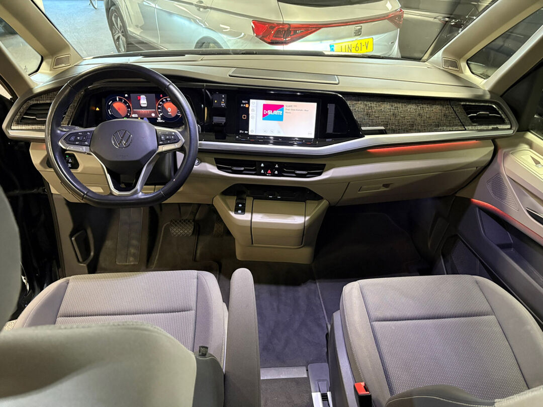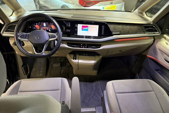 Deze Multivan is rijk uitgerust met innovatieve features zoals een volledig digitaal instrumentenpaneel, multifunctioneel stuurwiel, matrix LED koplampen en verkeersborddetectie. Veiligheid is gegarandeerd met autonome noodremassistentie, rijstrooksensor met correctie, botswaarschuwing en vermoeidheidsherkenning. De elektrische schuifdeuren aan beide zijden, achteruitrijcamera en parkeerassistent maken parkeren en in- en uitstappen een fluitje van een cent. Extra stijl en functionaliteit komen van de 17-inch lichtmetalen velgen, elektrisch inklapbare buitenspiegels en keyless start.