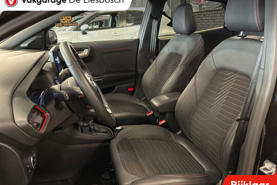 Ford, een merk met geschiedenis. En een ijzersterke reputatie. Go Further, zeggen ze. Een aantrekkelijke filosofie. De aandrijving van deze Ford wordt verzorgd door een driecilinder motor en een automatische transmissie. Bij de complete uitrusting van deze auto hoort ook stoelverwarming. De achterklep opent automatisch met een druk op de knop. Handig als u met volle handen staat. Stramme vingers krijgen 's winters een VIP-behandeling van het verwarmd stuurwiel. Bij de uitrusting van deze auto horen onder meer 19 inch lichtmetalen velgen, LED koplampen, sportonderstel, halflederen bekleding, geluidsisolerende ramen en elektrisch inklapbare buitenspiegels.