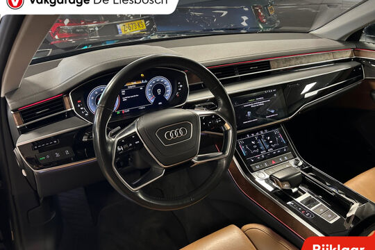 Dynamische styling, zorgvuldig afgewerkt met fraaie materialen en ontworpen met oog voor detail. De Audi A8 is van binnen en van buiten een toonbeeld van Duits design. De uitstekende prestaties van deze auto komen van de zescilinder motor en de automatische transmissie. Maximale grip op de weg, overal en altijd: dat biedt de vierwielaandrijving. Comfort? Luxe? Stijl? Allemaal meegeleverd in de vorm van het lederen interieur. Bestuurder en bijrijder krijgen een warm welkom: deze Audi A8 is voorzien van verwarmbare voorstoelen. De bagageruimte is toegankelijk via een comfortverhogende elektrische achterklep. De matrix LED-verlichting in de koplampen bestaat uit een raster van lichtpunten met maximale opbrengst. Bij tegenliggers past het systeem precies die punten aan die hinderlijk kunnen zijn. U behoudt maximaal zicht! In deze auto profiteert u onder andere ook van: elektrische zonnerollo voor de achterruit, 20 inch lichtmetalen velgen, warmtewerend glas en LED-achterlichten.
