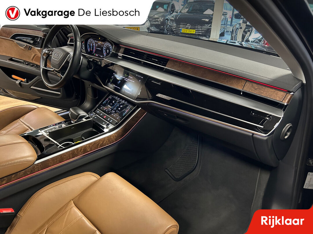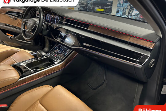 Zoals u mag verwachten van deze Audi A8 is hij uitgerust met een reeks aan actieve veiligheidssystemen. In het instrumentarium laat de verkeersborddetectie de actuele verkeersborden zien. Met het Lane-keeping systeem komt u nooit per ongeluk buiten de rijstrook. Bij concentratieverlies en toenemende vermoeidheid van de bestuurder, geeft de auto een sterk signaal om u weer bij de les te houden. Hierdoor kunnen veel ongelukken voorkomen worden.
